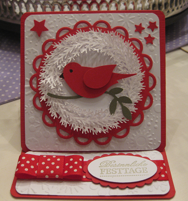 heut früh beim Einkauf auf dem Markt - trotz Winterjacke. Es hätte mich nicht gewundert, wenn plötzlich" Oh Tannenbaum" erklungen wäre.... nur die Erdbeeren und der Spargel passten nicht ins Bild. Da ists doch kein Wunder, wenn mir der Sinn nach Weihnachtskarten steht!